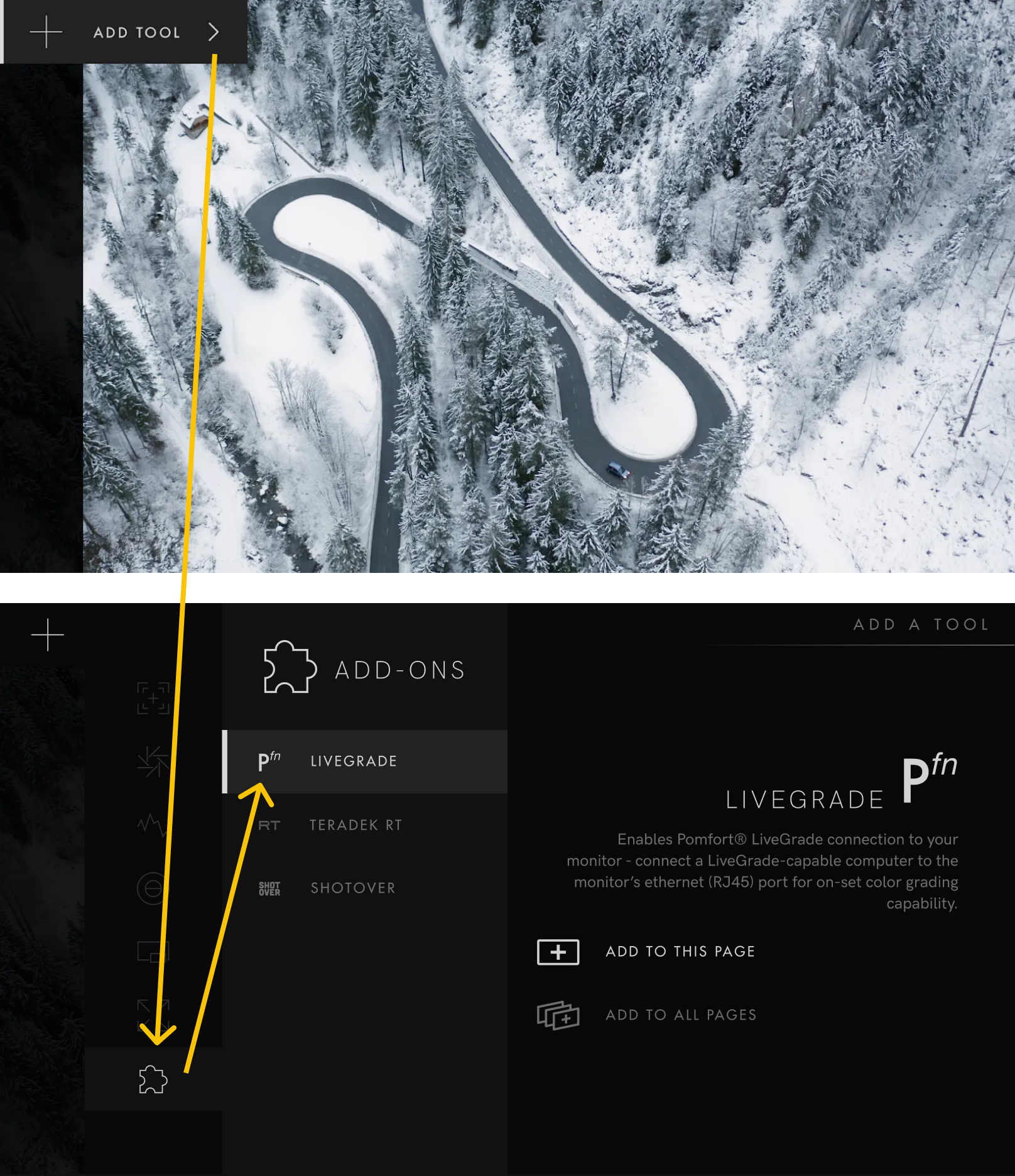 Step 2: Apply Livegrade as a tool to any standard page within the monitor settings