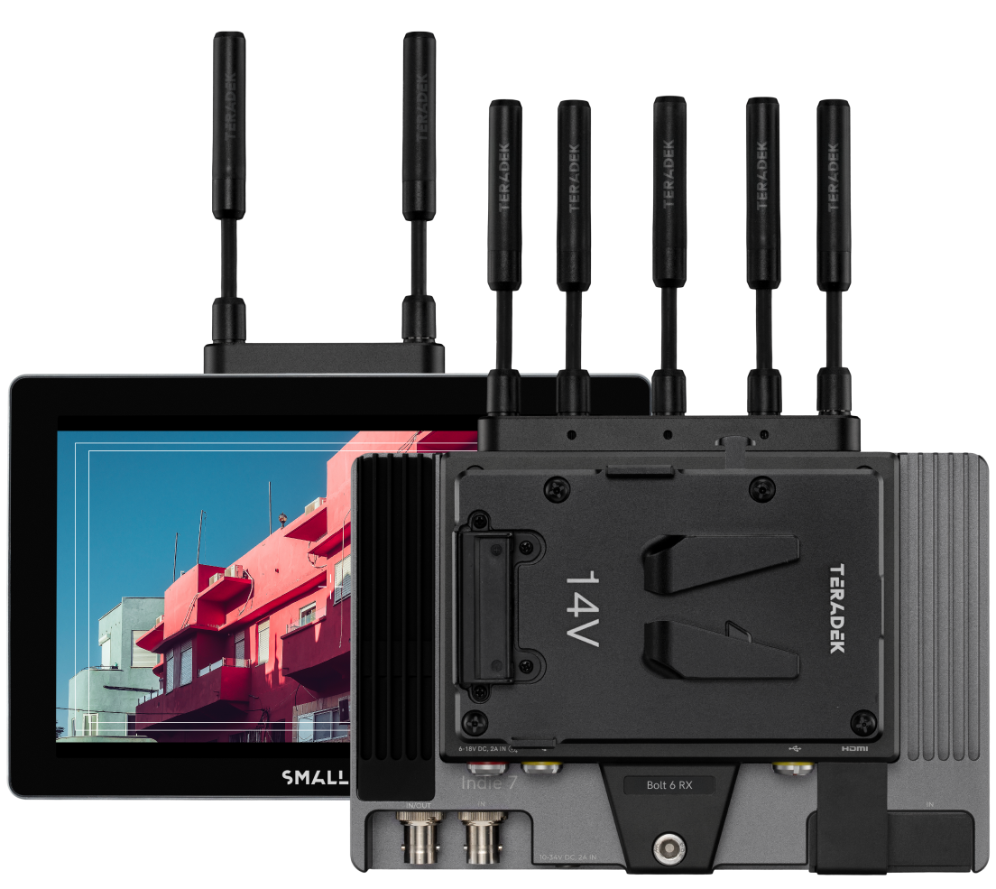 Receive pristine wireless video from any Teradek Bolt 6 or Bolt 4K transmitter at a distance of up to 750ft (228m) or 1500ft (457m). This hardware addition to Indie 7 attaches to the back of the monitor for integrated, cable-free workflows. Included with